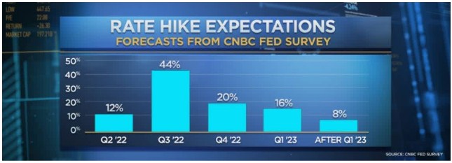Các tham vấn viên cũng đưa ra dự báo về lần tăng lãi suất đầu tiên sẽ đến sớm hơn, cụ thể là vào tháng 9 năm 2022 thay vì tháng 12 như trong cuộc khảo sát trước.