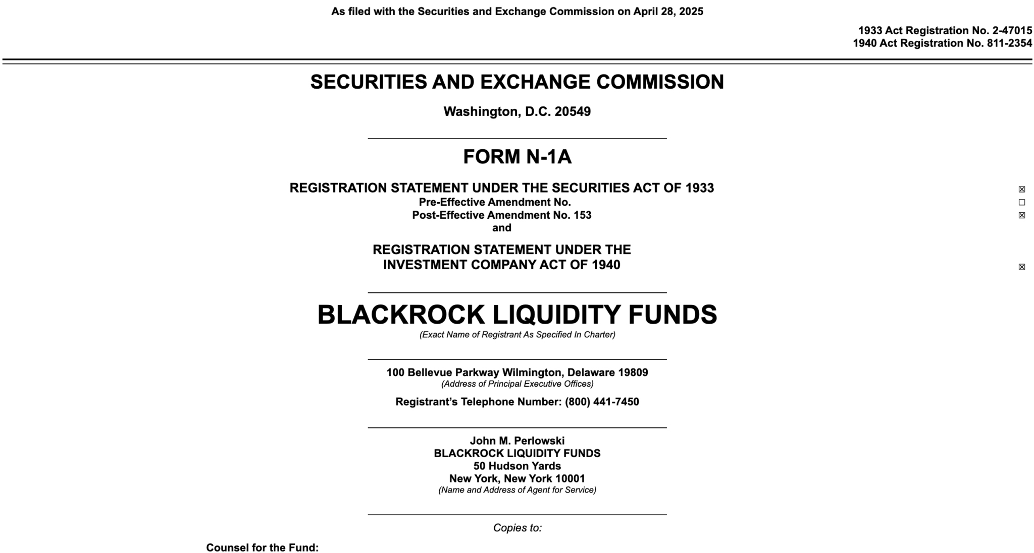 BlackRock ra mắt Quỹ thị trường tiền tệ trị giá 150 tỷ đô la | Ngày 28/04/2025 | Nguồn: SEC.gov