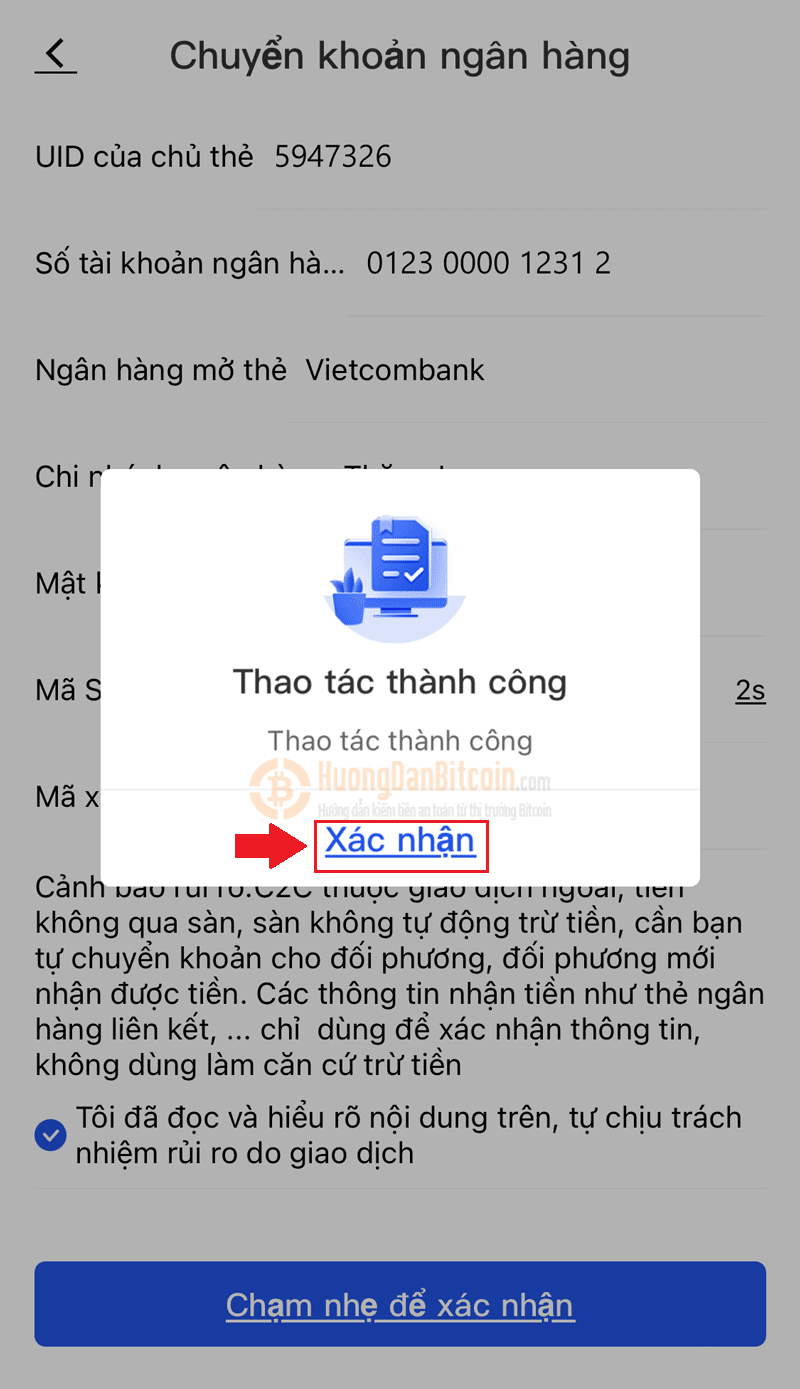 Bạn bấm “Xác nhận” để xác thực Thao tác thành công.