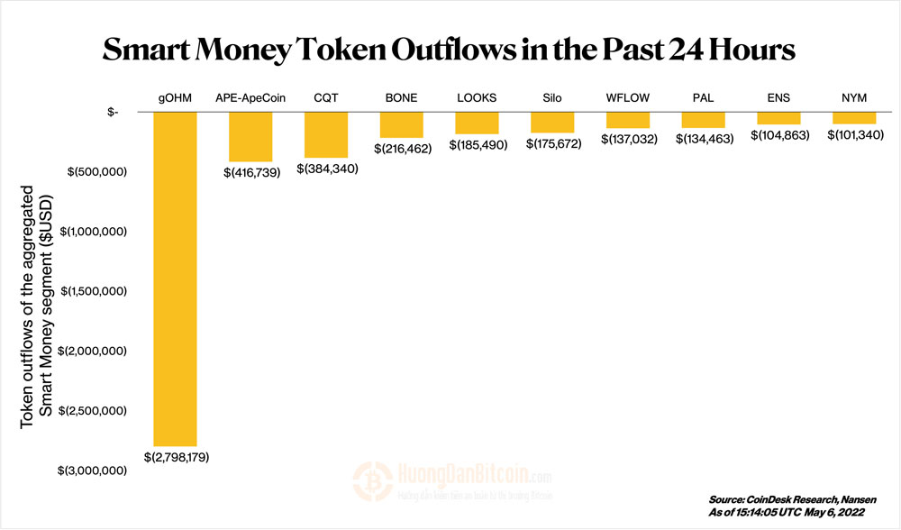 Trong cùng khoảng thời gian 24 giờ, gOHM trị giá khoảng 2.8 triệu đô la, dòng tiền lớn nhất trong số các mã thông báo được Nansen theo dõi, đã rời ra khỏi một địa chỉ tiền thông minh, được gắn nhãn là “🤓 Smart LP: 0x413”. Đồng thời, OHM trị giá 2.2 triệu đô la đã được nhập vào cùng một ví đó, có thể thấy ở đây.